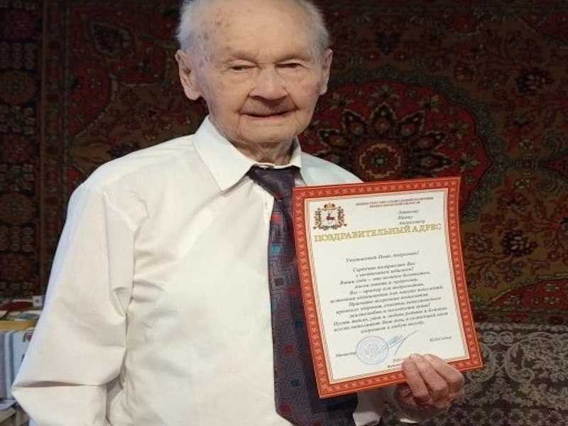 С вековым юбилеем ветерана поздравили военный комиссар Нижегородской области Сергей Агафонов, глава администрации Советского района Александр Иванов и сотрудники Управления социальной защиты Советского района. Гости вручили юбиляру поздравительные письма от Президента РФ Владимира Путина, Губернатора Нижегородской области Глеба Никитина, министра социальной политики Нижегородской области Игоря Седых, а также подарки и цветы.